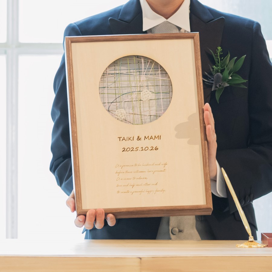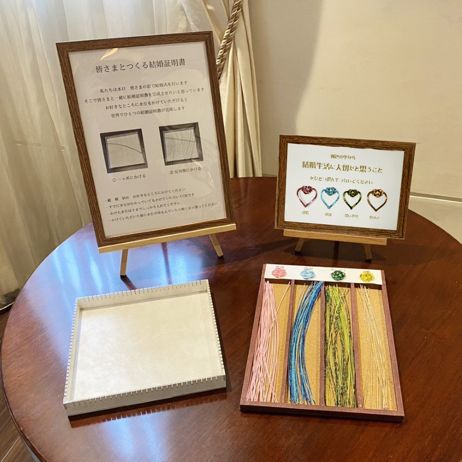 挙式の中で新郎新婦も一つずつつないで、額縁の中にセット。